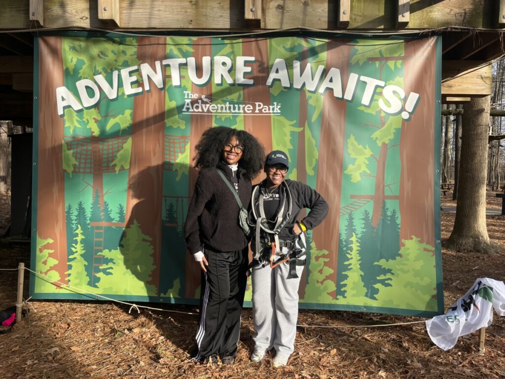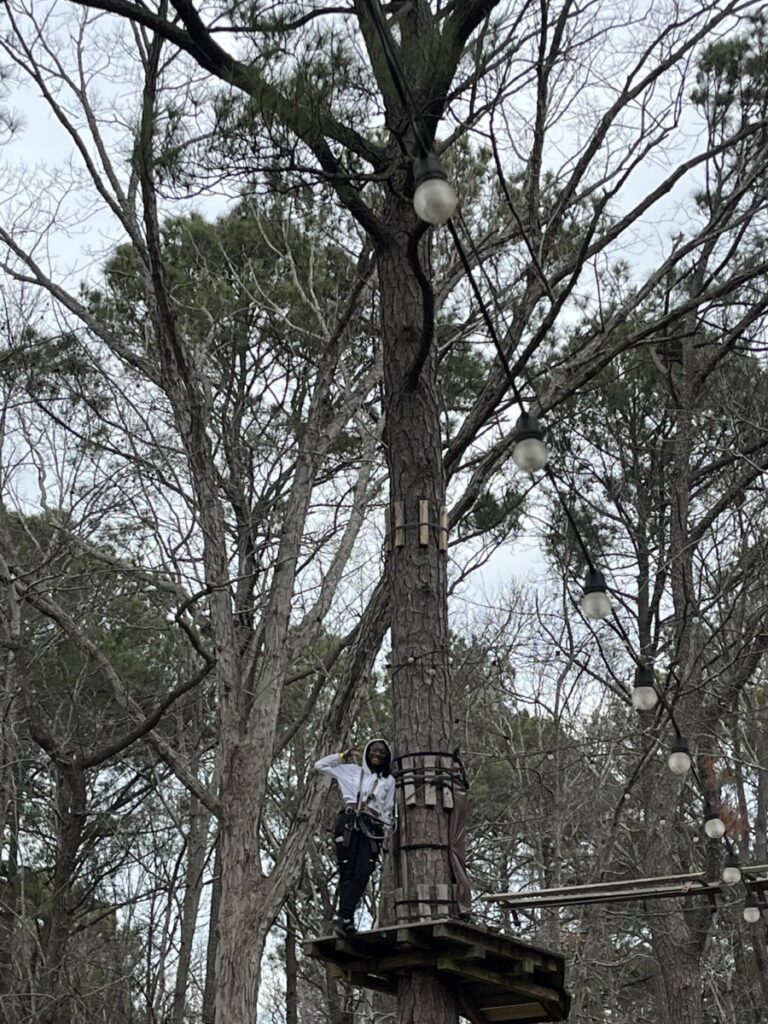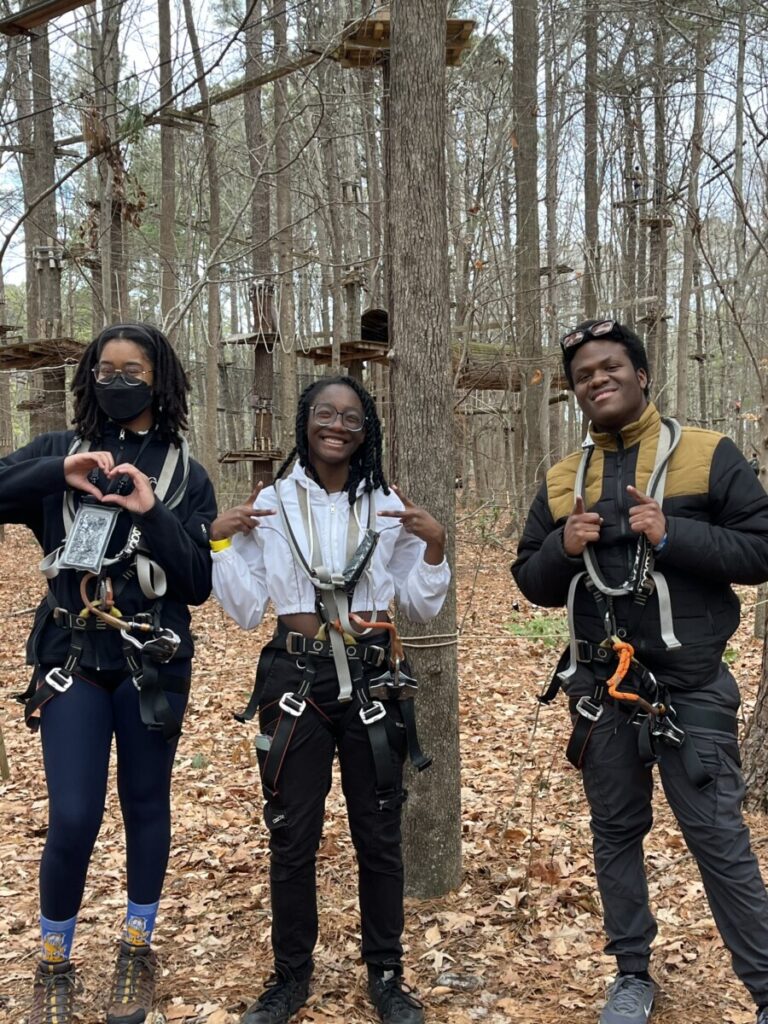 The Adventure Park was designed to push participants beyond their comfort zones through treetop climbing courses and ziplines of varying difficulty levels. Ambassadors Jada and Cydnie chose this location because it offered the perfect balance of adventure and personal growth. Not only did it require physical strength and endurance, but it also challenged students to confront fears of heights and self-doubt. For many of the participants, this was their first time visiting the park, and for some, their first time ever riding a zipline! Their excitement was evident from the very beginning, and their energy carried throughout the entire outing.