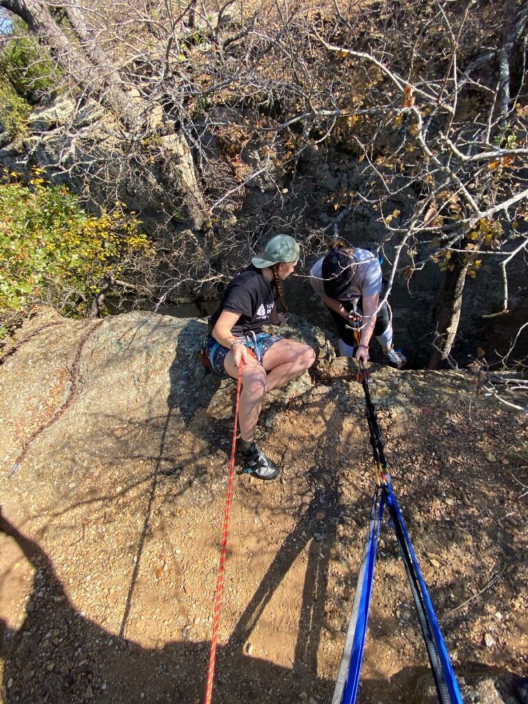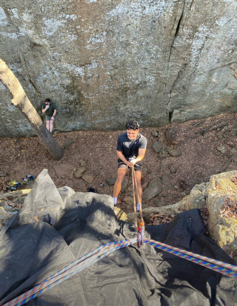 Now it was time to do what we’d all been waiting for… CLIMB!! We made our way down to the crag and went over basic safety before beginning. Participants also had the opportunity to learn how to repel and then put it to use after being taught by Ava and Maddie! For many, it was nerve-racking, but it was so fun to see them conquer their fears!
