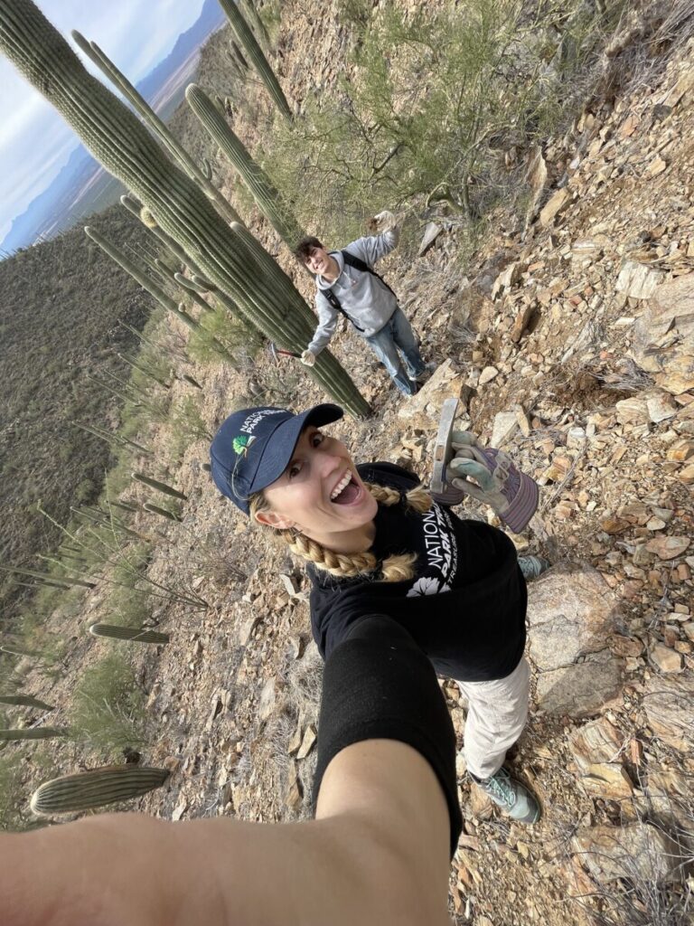 Our adventure concluded with free admission to the Arizona-Sonora Desert Museum, allowing participants and ambassadors to explore the museum at will. There were exhibits of all kinds of desert species, from large cats and javelinas to lizards and plants. The energy was especially high at this point in the outing. Participants were awake and stoked to see what the museum had to offer, revitalized by a feeling of completion after a day of weeding. Some stand-out moments from the outing were conversations we had while weeding, seeing the impact of Sonya’s grazing project with before and after pictures of Sentinel Peak, and everyone spotting their favorite creatures at the Desert Museum. This trip would not have been possible without the help of the National Park Trust. The requirement of a stewardship outing inspired ambassadors to do something specific to the Tucson region. Pulling buffelgrass was a perfect way to give back to the outdoor community we know and love out here in the desert.