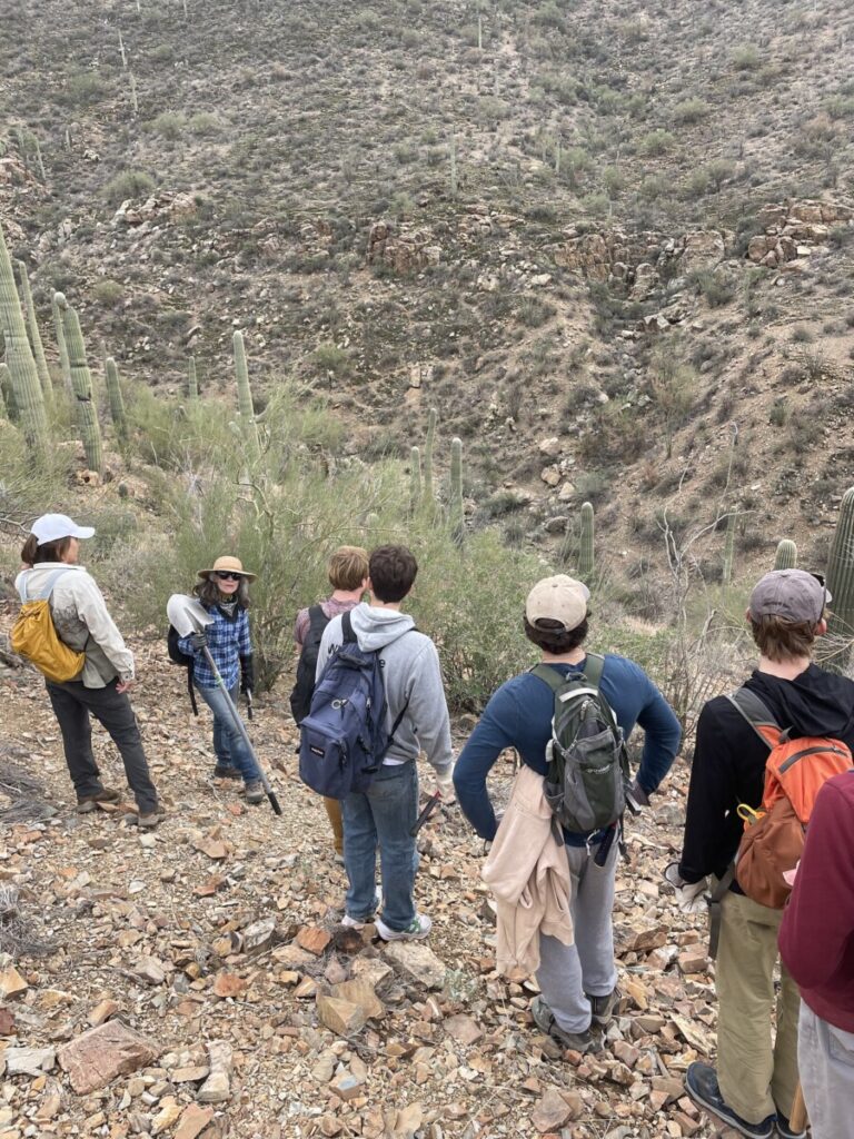 We mainly chose the Tucson Mountain Park / Saguaro National Park West because this is where Sonya regularly takes out groups to pull buffelgrass. She was excited to have a group of college students who could hike up the slope and finish a spot they’d been weeding for over a decade. It was an honor to fully rid this spot of buffelgrass, and doing so brought a great sense of accomplishment to our ambassadors and participants. Post-weeding, Sonya gave a presentation about buffelgrass- where it came from, why we’re removing it, and how we can prevent its spread. She told us about a project she recently completed where she brought sheep to Sentinel Peak, a prominent peak in the Tucson Mountains. The sheep grazed the buffelgrass over the course of several months, making it easier for people like the Sonoran Desert Weedwackers to use chemicals to kill the weeds or pull them manually. This presentation gave context to the stewardship work we were doing and inspired participants to go out and pull buffelgrass they saw in their day-to-day lives. Since the trip, I’ve had three participants tell me about or send me pictures of them pulling buffelgrass that they spotted around town. Their efforts to remove the species outside of the trip show their dedication to stewardship and the impact of the trip on their personal lives.