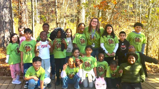 Bryant Elementary School’s Buddy Bison programming kicked off earlier this month for 135 second graders who took a journey through the night sky when Chattahoochee Nature Center staff brought an inflatable planetarium to the school to bring the constellations and phases of the moon to life. During a Nov. 18 visit to Bear Creek Nature Center, students participated in multiple hands-on educational activities, including interacting with some of the center’s resident reptiles, exploring the life cycle of a toad, and unraveling the mysteries of bats.